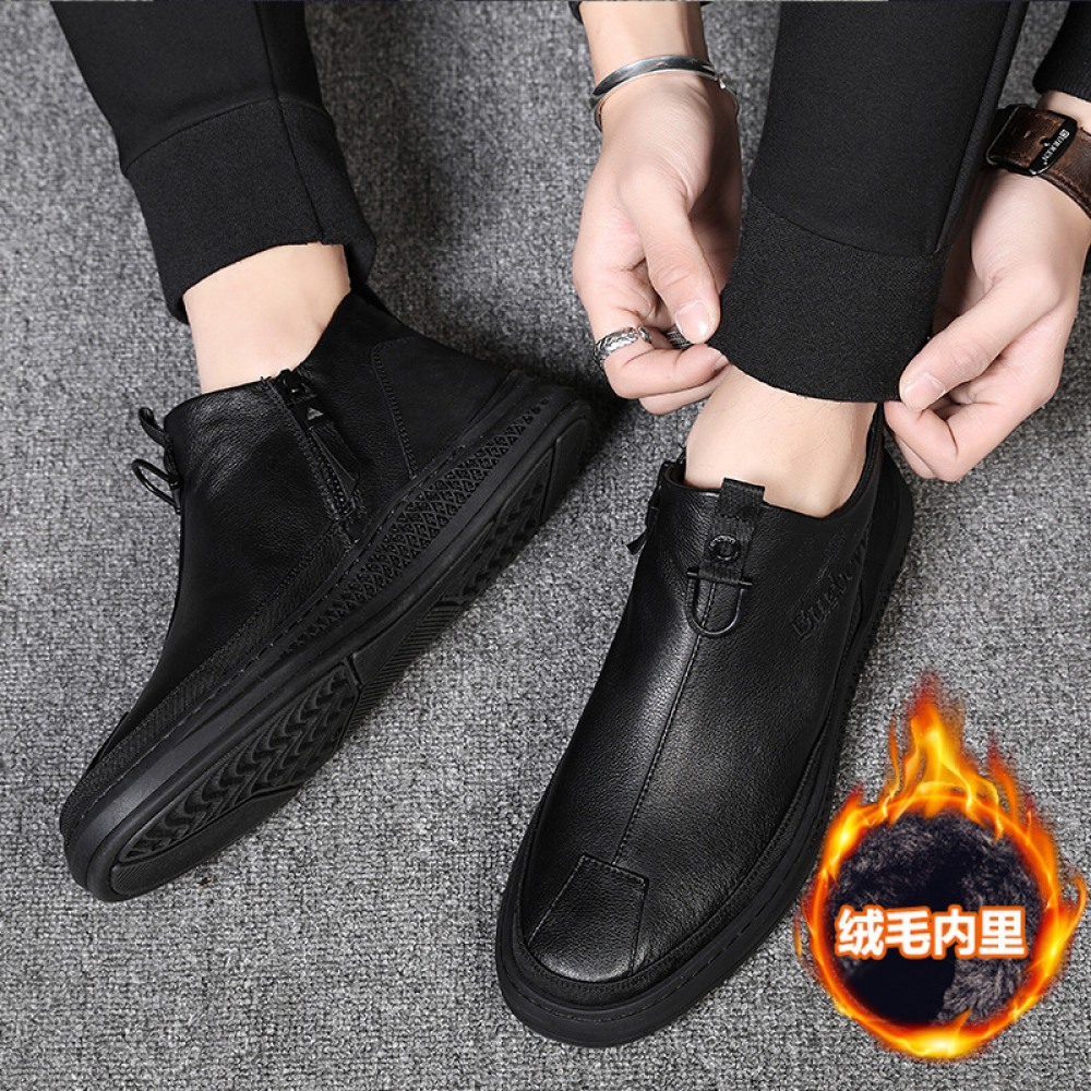 Men's Cotton Shoes Cowhide High-Top Snow Boots Plus Fleece Warm Boots