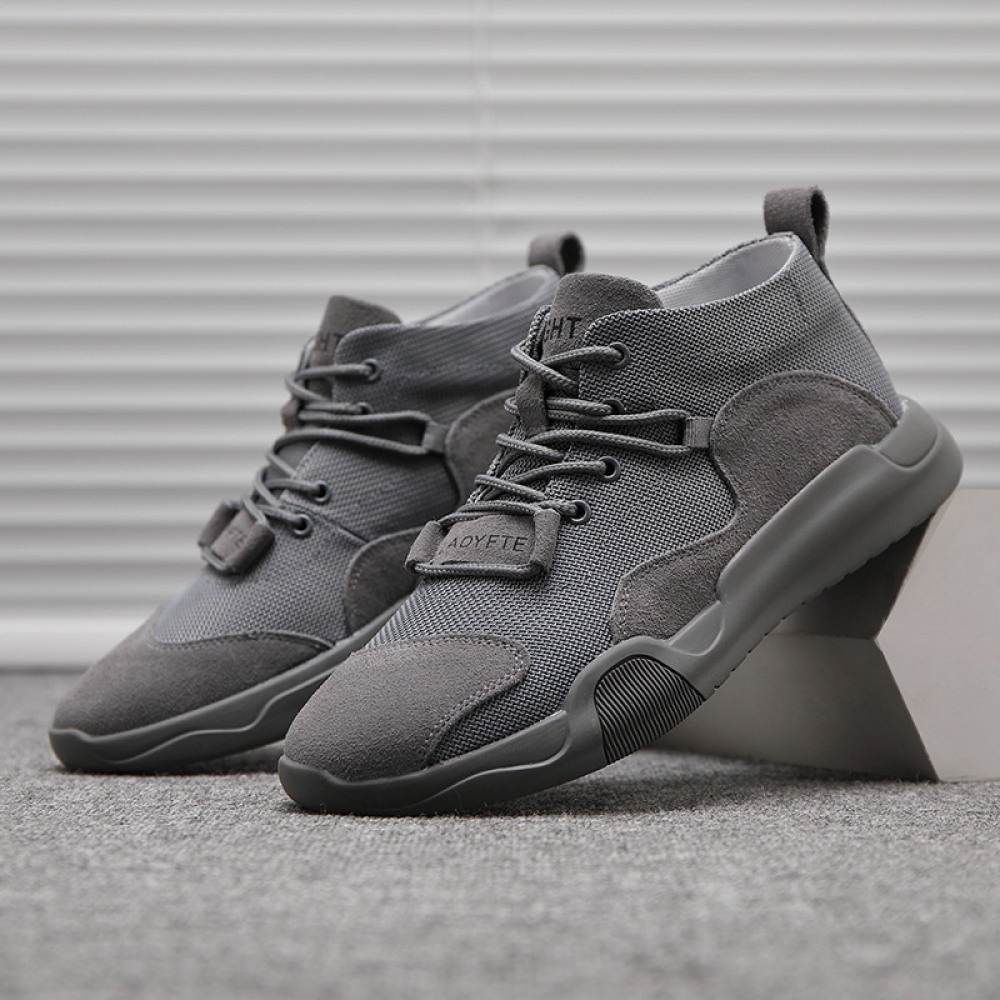 Casual Sports Shoes Leather Breathable Mesh Shoes Explosion Models Mesh Stitching Men's Trendy Sneakers