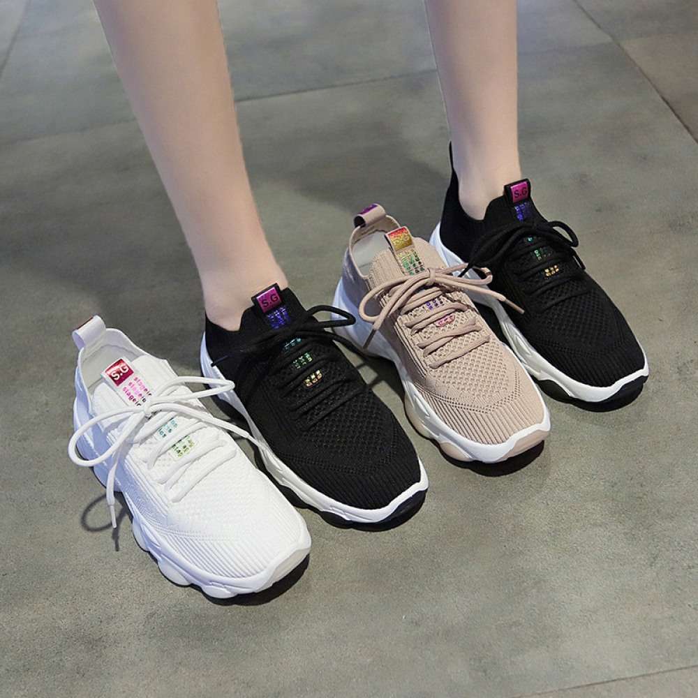 Spring And Summer New Flying Woven Women's Shoes Women's Sports Shoes Female Students Breathable Running Sneakers