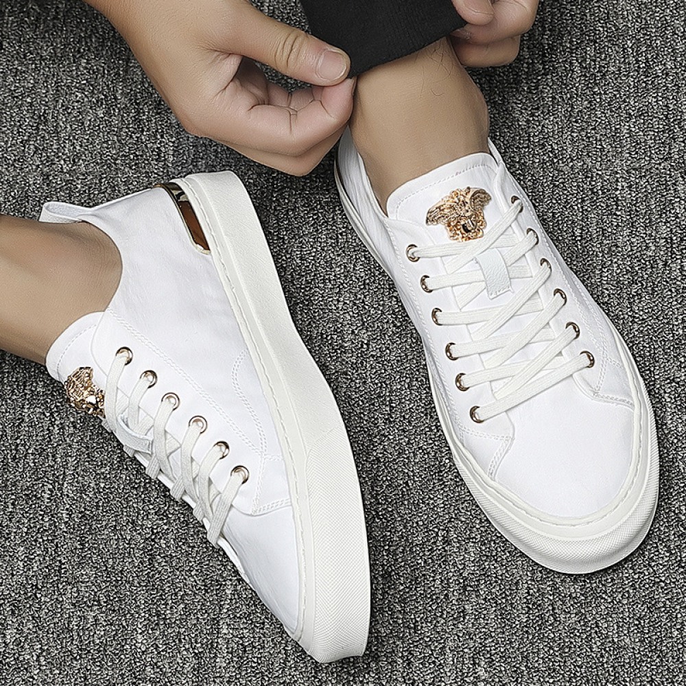 Sports Shoes Men's Spring New Trendy Shoes Leather Casual Style Men's Shoes White