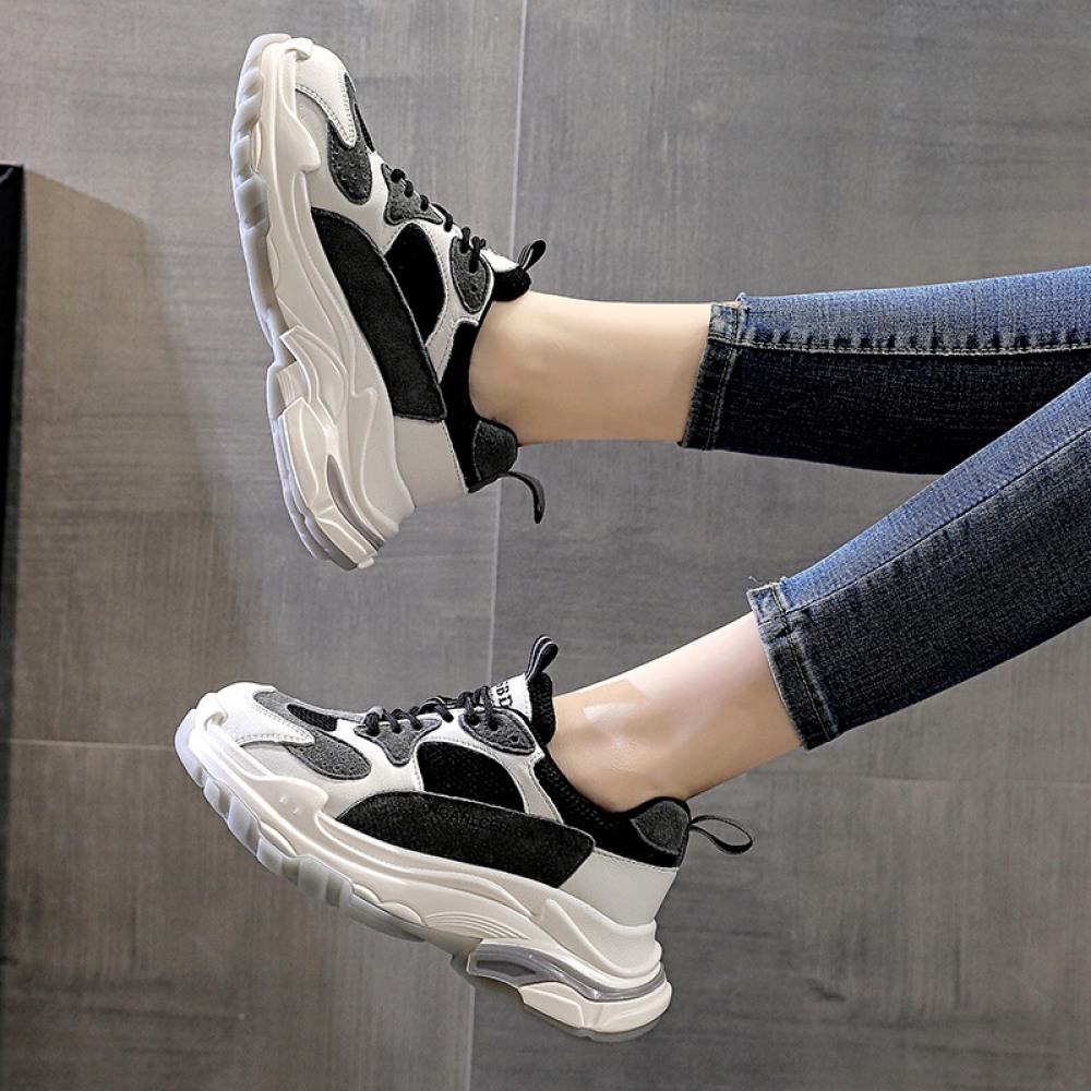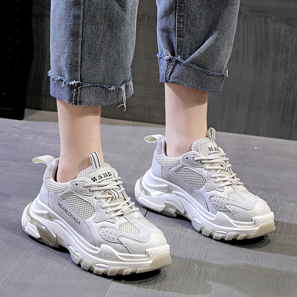 Women's Autumn New Casual Sports Shoes Mesh Breathable Thick Sole Height-Increasing Shoes Summer Trendy Sneakers