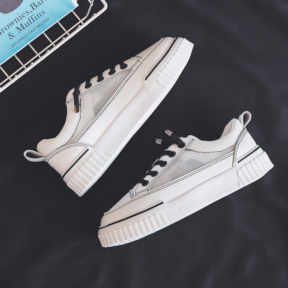 White Shoes Female Spring New Breathable Student Running Board Shoes Female Flat Lace-Up Shoes