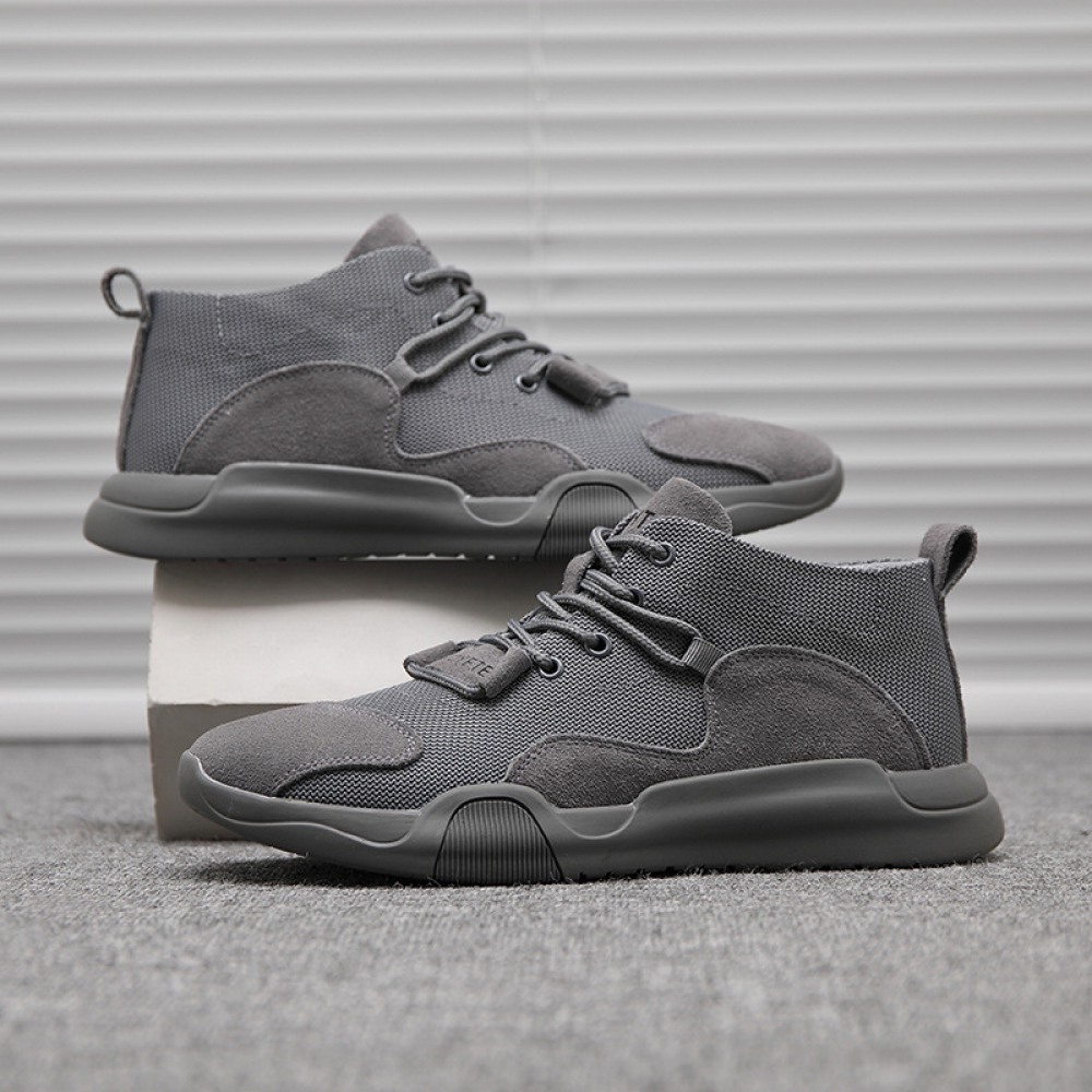 Casual Sports Shoes Leather Breathable Mesh Shoes Explosion Models Mesh Stitching Men's Trendy Sneakers
